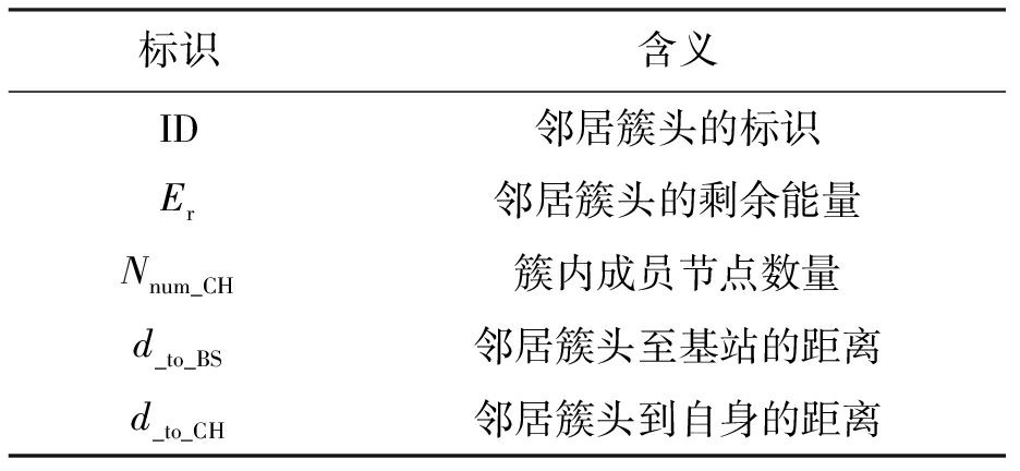 表2 邻居簇头信息