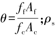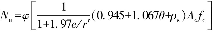 式中:Nu为短柱承载力值;φ为影响系数;e为偏心距;r′为试件外径;θ为套箍指标,为配骨指标,