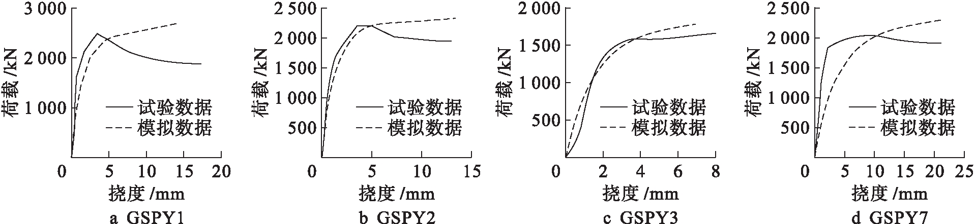 为了验证数值模型的准确性,通过ABAQUS模拟GFRP管中长柱偏压的荷载挠度曲线,本文采用文献[5]中试验数据,详细数据如表2所示(变量含义见文献[5]).
