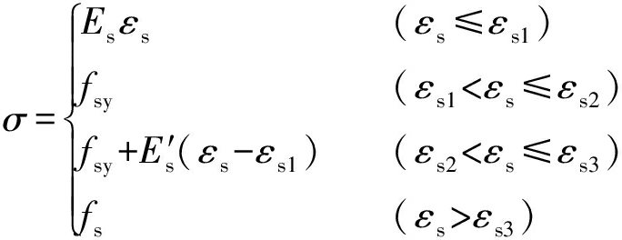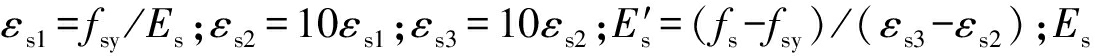 式中:为钢骨弹性段的弹性模量;εs为钢骨应变;fsy为钢骨的屈服强度;fs为钢骨的极限强度.