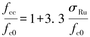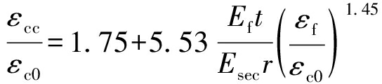 式中:Ef为GFRP管弹性模量;t为GFRP管管壁厚度;εf为FRP材料材性试验中的断裂应变;Esec为无约束混凝土峰值点的割线模量;εc0和εcc分别为无约束混凝土和约束混凝土的峰值应变;r为构件半径;