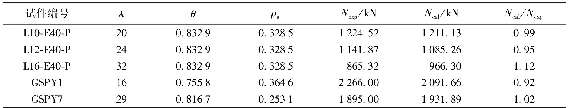 试件编号λθρsNexp/kNNcal/kNNcal/NexpL10-E40-P200.83290.32851224.521211.130.99L12-E40-P240.83290.32851141.871085.260.95L16-E40-P320.83290.3285865.32966.301.12GSPY1160.75580.36462266.002091.660.92GSPY7290.81670.25311895.001931.891.02