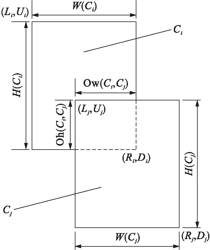 合并后的宽Uw(Ci,Cj)=max(Ri,Rj)-min(Li,Lj);