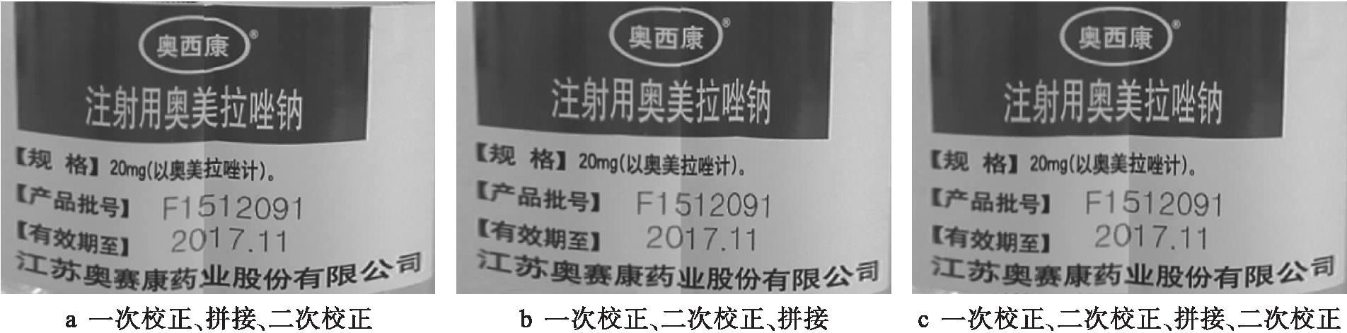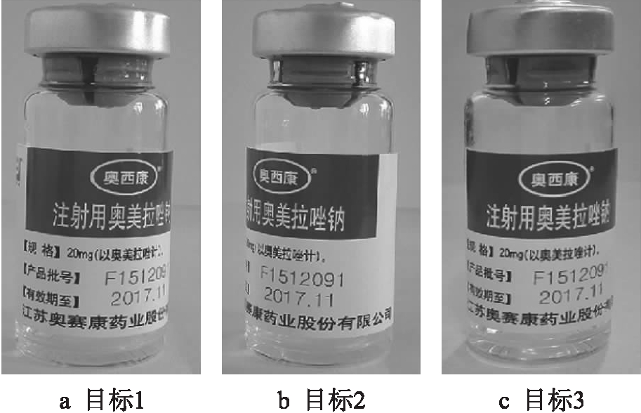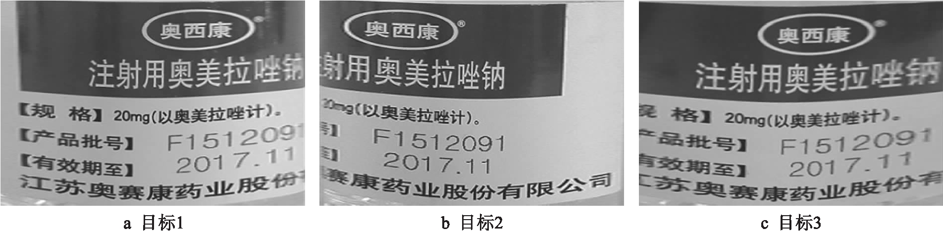 采集有重叠区域(重叠区域大于1/3)的3组不同角度的药瓶标签图像注射用奥美拉唑钠如图4所示.
