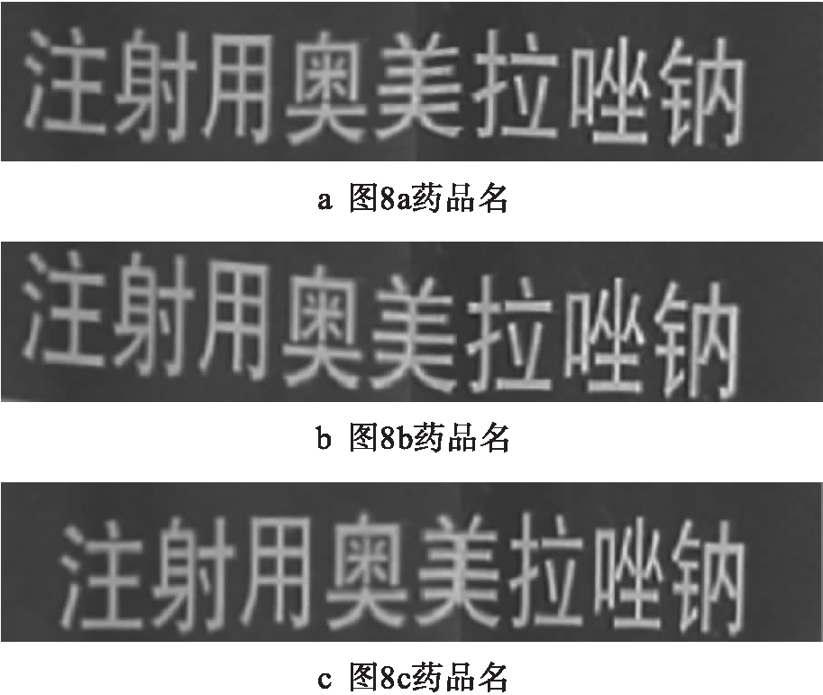 分别从图8a、b、c提取药品名称有效区域如图9所示.