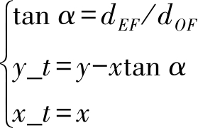 (x,y)为弧面上任意一点的坐标,变化后的坐标为(x_t,y_t),dOE和dOF大小由实验图像获得.