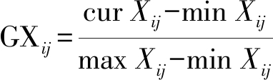 式中:cur Xij为性能参数的当前值;min Xij为性能参数的最小值;max Xij为性能参数的最大值.