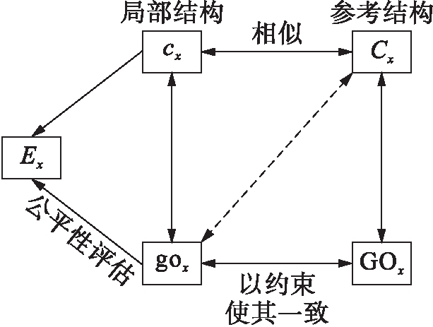 根据社会福利分配公平性原理,在云计算任务调度环境下建立了双重公平性约束,如图2所示.图2中符号含义说明如下:cx为局部结构的目标特征;Cx为参考结构的目标特征;gox为局部结构的分配值;GOx为参考结构的分配值.