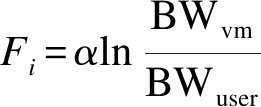 带宽需求适合于较频繁的通信应用请求环境.本文首先根据式(7)对资源参数进行归一化处理,然后,根据式(8)计算带宽期望偏好的一般期望值向量的Euclidean距离,最后,将所调度任务映射至Euclidean距离最小的虚拟机上执行.令BWvm表示对于任务Ti从虚拟机上所获得的实际带宽,BWuser表示用户任务期望的带宽要求,因此,式(1)可转换为