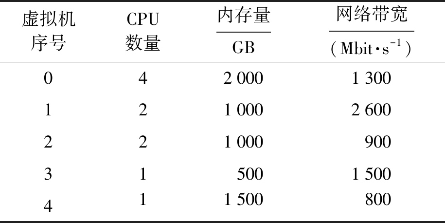 虚拟机序号CPU数量内存量GB网络带宽(Mbit·s-1)04200013001210002600221000900315001500411500800