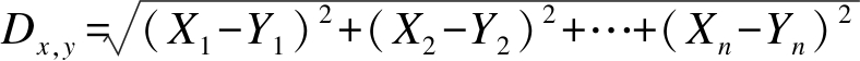 利用式(5)将资源参数与用户任务的一般期望GEi进行匹配,并计算两者之间的Euclidean距离.当距离最小时,表明两者间的相似性最佳.向量X={X1,X2,…,Xn}与向量Y={Y1,Y2,…,Yn}间Euclidean距离的计算方法为