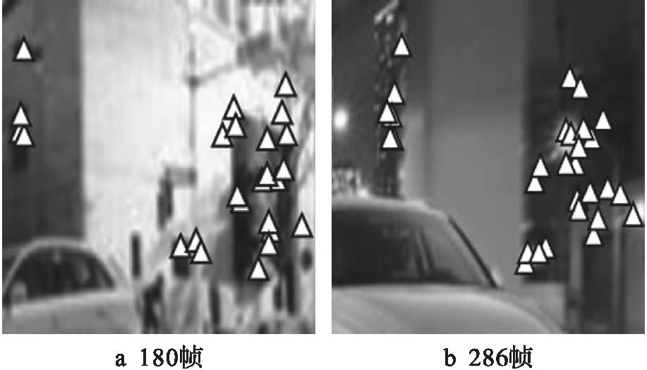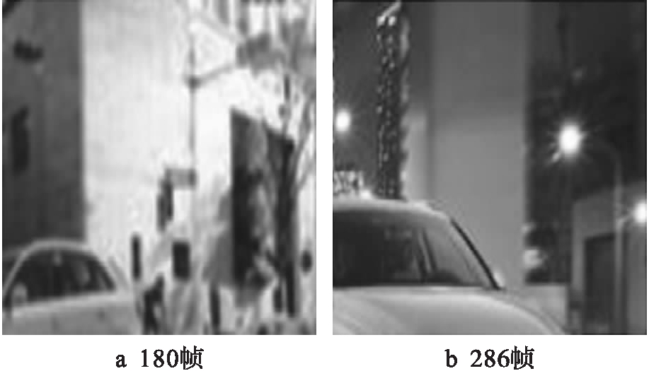 实验使用的图像采集部件为Tek Gear,在高速运行的汽车中部署该部件.样本图片来源为汽车行驶过程中道路两边的视频图像.选取180帧和268帧的样本图像作为实验分析对象,原始图像如图1所示.采用基于小波变换的图像特征提取方法、基于随机森林算法的图像特征提取方法及本文方法获取的运动图像边缘轮廓特征图分别如图2~4所示.