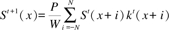式中,kt(x+i)为卷积权值,kt(x+i)≥0(-N≤i≤N).自适应平滑过程中,N=1,则kt(x)表示为