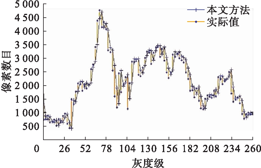 将图4中的286帧图像作为原始图像,利用最大类间方差法对运动图像特征设定阈值,获取最新的隶属度函数,以此完成图像的多阈值优化,在此基础上完成对图像特征的提取.将多阈值优化后的图像进行分析,并与实际值进行对比,结果如图5所示.