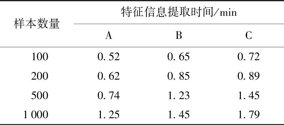 样本数量特征信息提取时间/minABC1000.520.650.722000.620.850.895000.741.231.4510001.251.451.79