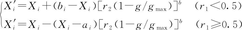 式中:r1,r2∈[0,1];ai和bi为上下限;g为进化代数;gmax为进化代数的最大值;b为扰动参数.