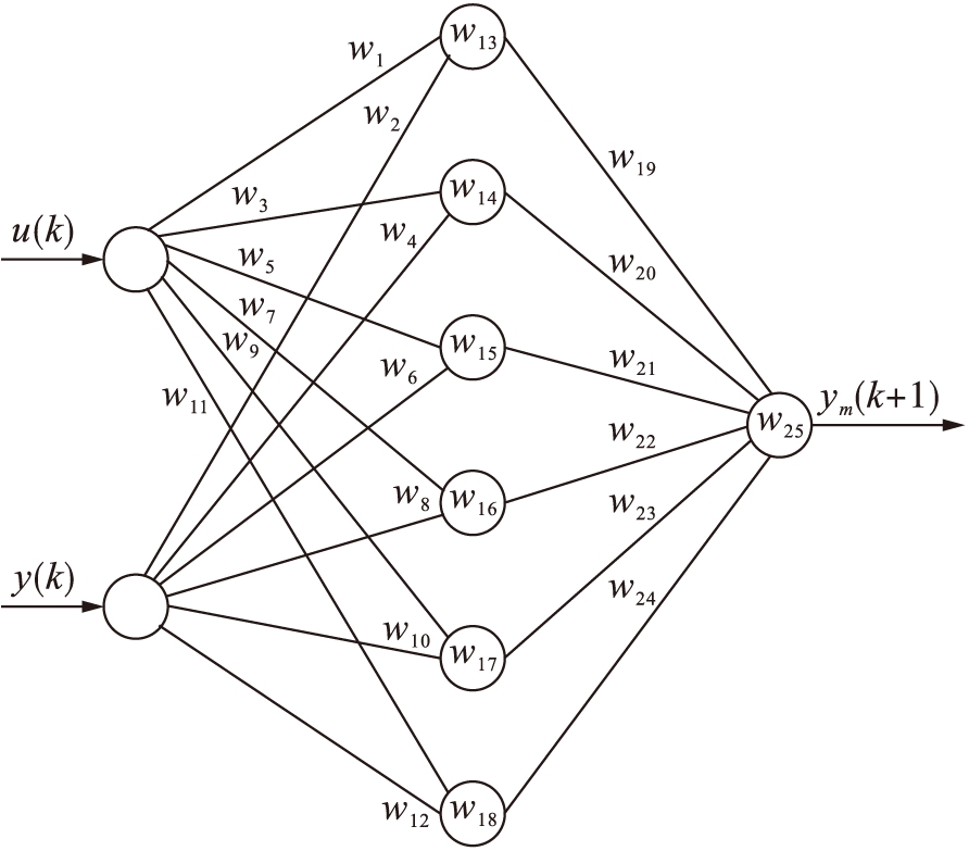 式中:n为样本数;ym(k)为模型输出.学习目标为Je1≤0.002 5.中间层的神经元个数为6,此时的网络结构为2-6-1.