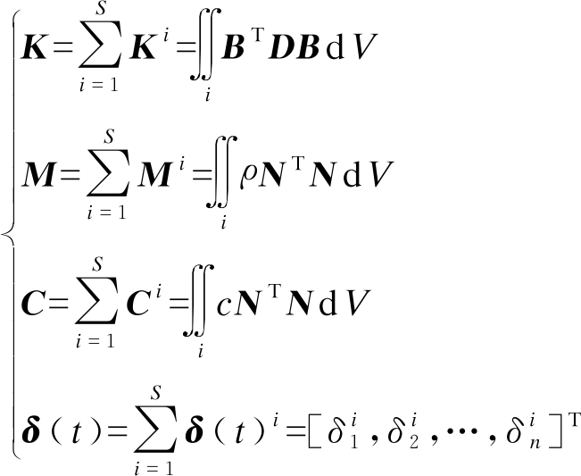 为平均节点位移(列)矩阵.K、M、C和δ(t)分别表示为