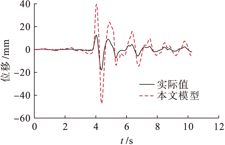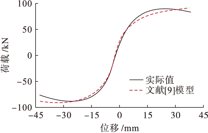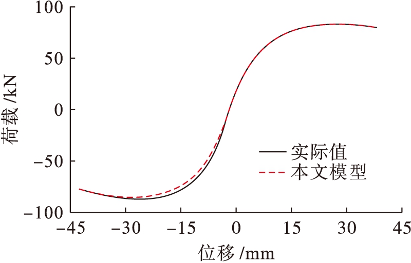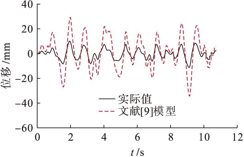 由图5~7可知,整体上实验值与实际值基本接近,在振动开始时处在弹性阶段,全部恢复力曲线在开始时就处在直线状态,随着加载进程的实行,模型进入弹塑性阶段,加载和卸载刚度随着循环次数的增加而显著降低.文献[9]与[10]模型在实验过程中,由于建筑自身的不对称性和正反方向破坏形态的不对称性等,导致左右两端承载力有稍微差别.而本文方法由于充分考虑了木构建筑材料性质,尤其考虑了木构材料的弹性形变及其自身的静压本构关系,最终保证了所建模型的稳定性及准确性.