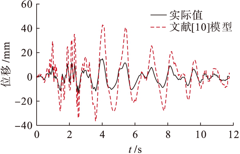 由图2~4可知,在时间不定的情况下,采用文献[9]模型时,出现的波动整体较为稀疏,但稳定性很差;采用文献[10]模型时,一开始就出现强烈的波动,峰值不高,但在4 s之后,出现的波动虽然较为稀疏但其峰值增高,不适合使用;采用本文模型时,其刚出现振动时,抗振性能很好,未出现位移波动,随着振动时间的增长,出现了少量的波动,虽然在4 s左右出现了很高的峰值,但是随后便开始降低,整体性能要优于文献[9]与[10]模型,具有一定的优势.这是因为本文建筑抗振动模型考虑了建筑自身的稳定性和抗振限值,而传统方法建模时,仅仅考虑了建筑结构自身的稳定性,而未考虑建筑材料自身的结构与稳定性能.在进行不同方法所构模型测试时,本文模型较其他模型能显示出更好的稳定性.