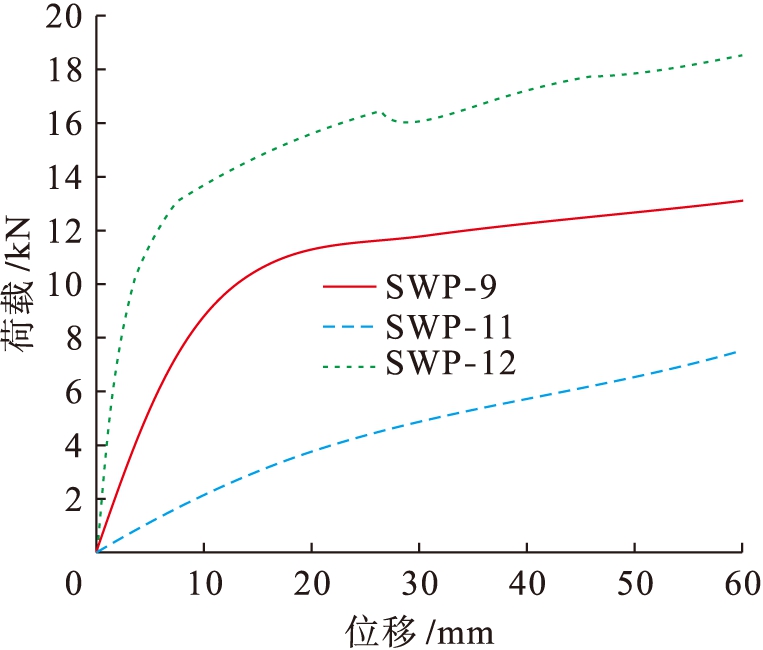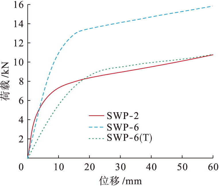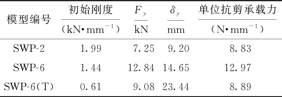 模型编号初始刚度(kN·mm-1)FykNδymm单位抗剪承载力(N·mm-1)SWP-21.997.259.208.83SWP-61.4412.8414.6512.97SWP-6(T)0.619.0823.448.89