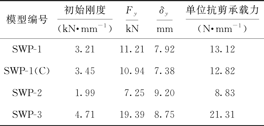 模型编号初始刚度(kN·mm-1)FykNδymm单位抗剪承载力(N·mm-1)SWP-13.2111.217.9213.12SWP-1(C)3.4510.947.3812.82SWP-21.997.259.208.83SWP-34.7119.398.7521.31