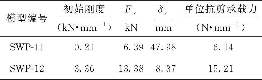 模型编号初始刚度(kN·mm-1)FykNδymm单位抗剪承载力(N·mm-1)SWP-110.216.3947.986.14SWP-123.3613.388.3715.21
