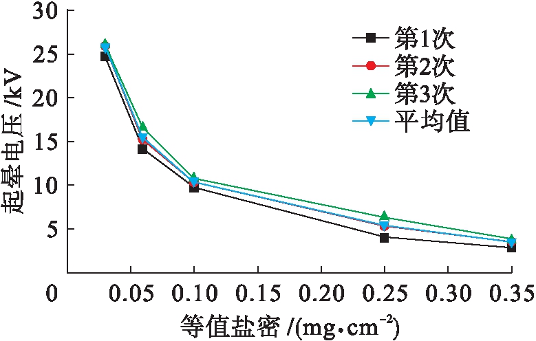 Fig.2 Relationship between corona voltage and equivalent salt density
