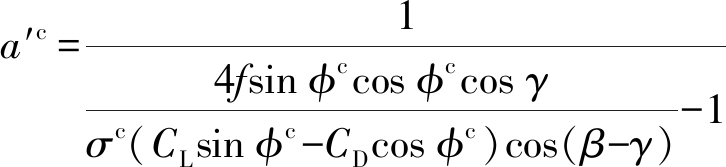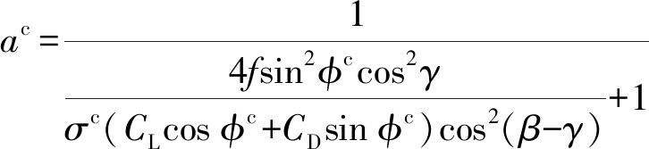 式中:γ为气流发散角,表示气流流线与旋转轴夹角;ac为对轴向诱导因子a的修正值.