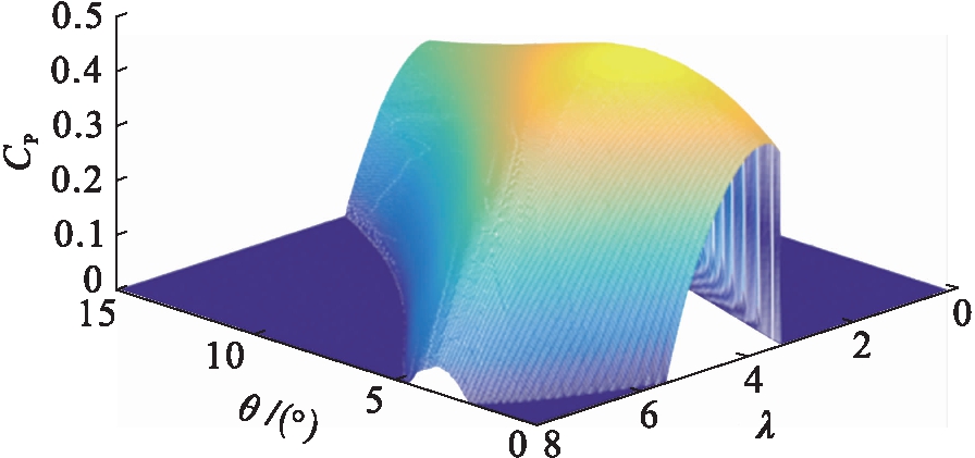 给定当地速度比λ及节距角θ,通过迭代式(8)~(13)计算出a、a′的收敛值,并进一步由式(14)计算出风能利用系数Cp.
