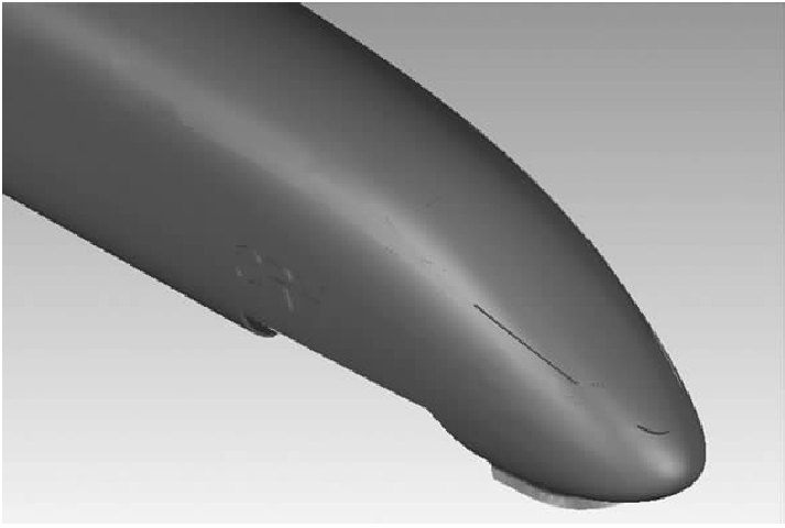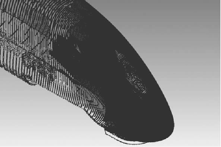 图5为通过机器视觉方法得到的车头三维点云模型(stl文件),图6为采用改进方法对其进行重建的三维模型.实验结果表明,通过改进算法重建得到的三维模型虽然在一些较小的细节上不清晰,但是对车头外形曲面的拟合精度高,并且重构曲面广顺度好.