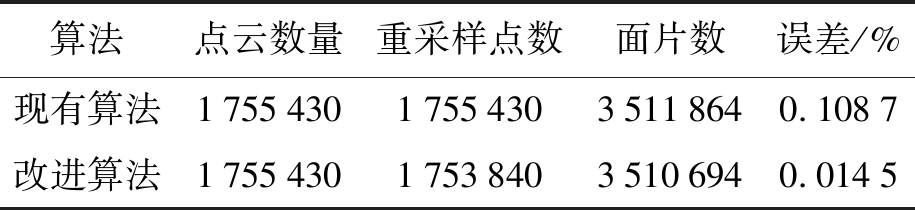 算法点云数量重采样点数面片数误差/%现有算法1755430175543035118640.1087改进算法1755430175384035106940.0145