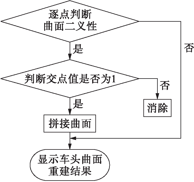 在泊松重建算法中,如果值为1的角点和值为0的角点位于对角线的两端,则会产生二义性的问题,本文提出一种解决此问题的算法,算法流程图如图3所示.