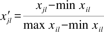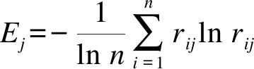 对于数据对象X={x1,x2,,xn},xi具有p个数值属性,表示数据对象xi的第j维属性值比重,xij为属性值,则第j维属性的信息熵为