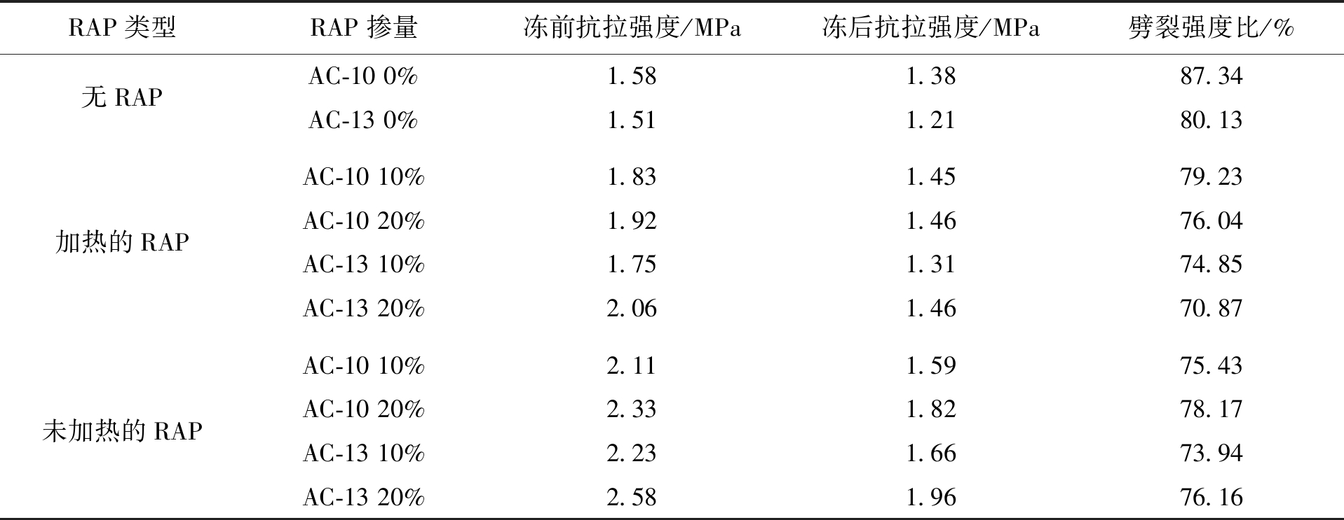 表6 多种RAP掺量下沥青混合料的冻融劈裂检测