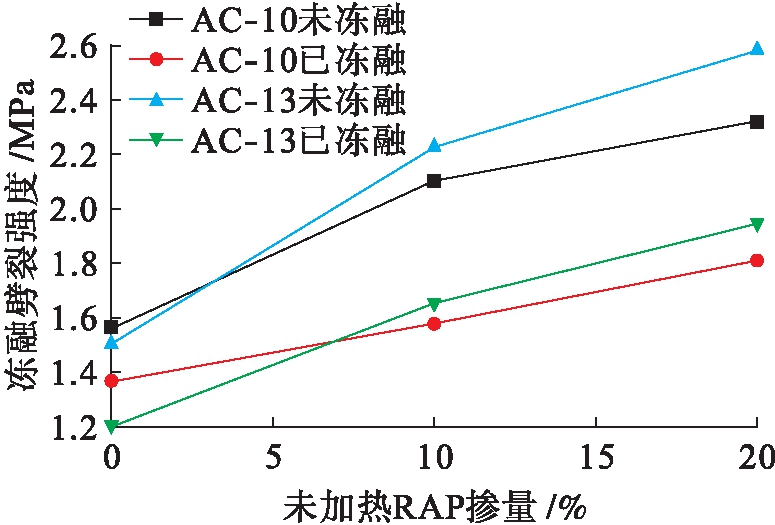 Fig.2 Freezing-thawing splitting strength of unheated RAP