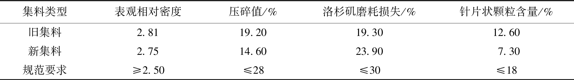 集料类型表观相对密度压碎值/%洛杉矶磨耗损失/%针片状颗粒含量/%旧集料2.8119.2019.3012.60新集料2.7514.6023.907.30规范要求≥2.50≤28≤30≤18