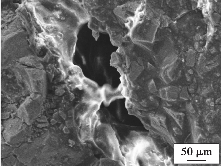 通过对RAP沥青混合料开展扫描电镜(SEM)观察,研究接触面的连接情况,判定其与水稳定性的关联.图4、5为加热与未加热两种情况下无尘电镜扫描图像.