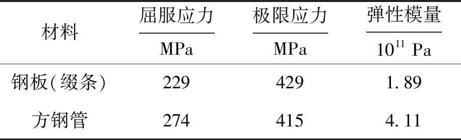 材料屈服应力MPa极限应力MPa弹性模量1011Pa钢板(缀条)2294291.89方钢管2744154.11