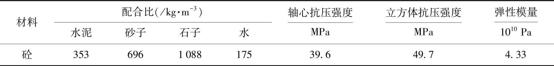 材料配合比(/kg·m-3)水泥砂子石子水轴心抗压强度MPa立方体抗压强度MPa弹性模量1010Pa砼353696108817539.649.74.33