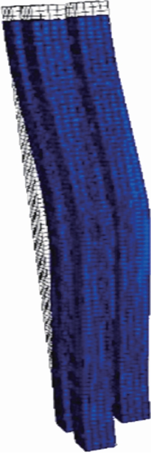 3) 在轴压变形过程中,整体和单肢柱在长柱中间部位都发生了较大的弯曲变形,而单肢柱的变形更为明显;