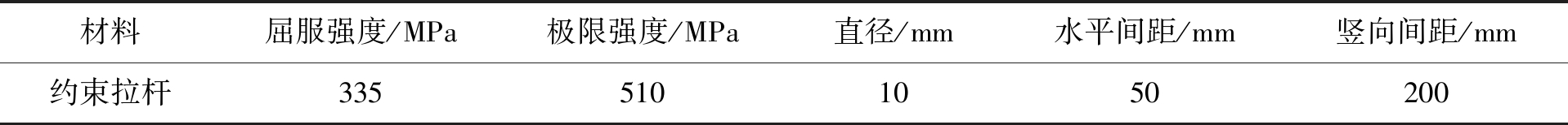 材料屈服强度/MPa极限强度/MPa直径/mm水平间距/mm竖向间距/mm约束拉杆3355101050200