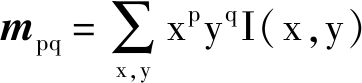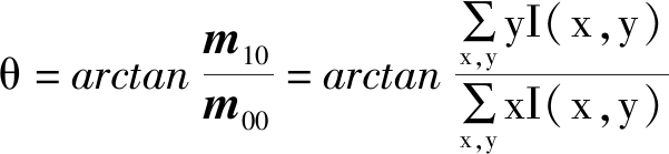 式中:(x,y)为相对FAST特征点的位置,(x,y)∈[-R,R],R为圆形邻域半径,一般取4;I(x,y)为(x,y)坐标上图像的灰度值;mpq为特征点p+q阶矩阵,p、q=0,1,2,….由此可得FAST角点圆形邻域的图像质心为
