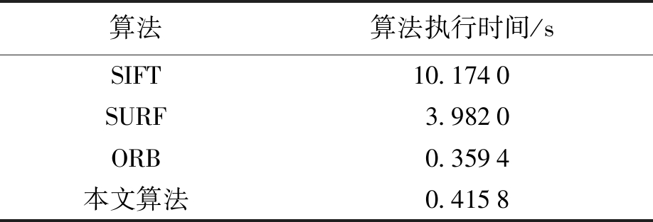 算法算法执行时间/sSIFT10.1740SURF3.9820ORB0.3594本文算法0.4158