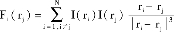 式中:I(ri)为点ri的灰度值;ri-rj为力的矢量方向;|ri-rj|为两个像素点之间的距离.像素点rj受到其他所有像素点的引力和可表示为