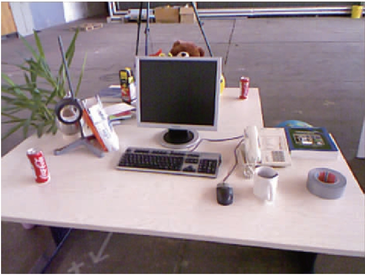图1为桌面图像.对图1每层图像金字塔进行计算图像熵,结果如表1所示.第1层图像熵为7.621 75,第7层图像熵为6.957 82,大约为原图像的90%,因此选择图像金字塔层数为6.