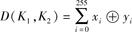 通过汉明距离计算ORB特征描述子的相似度D(K1,K2),D(K1,K2)越大,则相似度越高,其表达式为