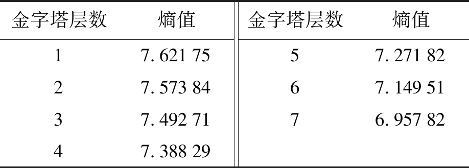金字塔层数熵值17.6217527.5738437.4927147.38829金字塔层数熵值57.2718267.1495176.95782