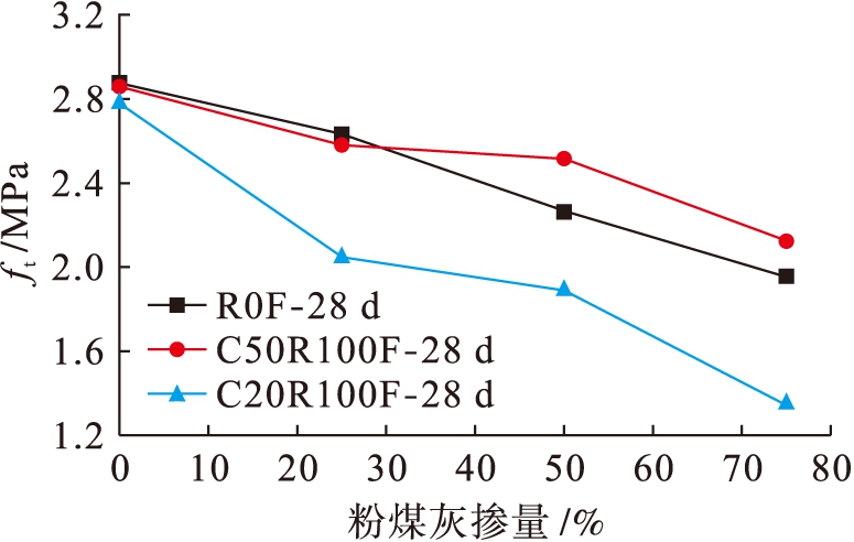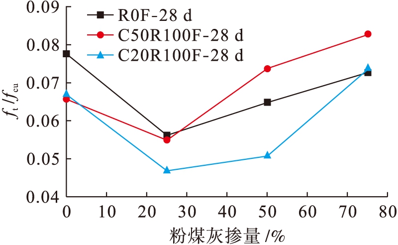 图3 粉煤灰掺量与劈裂抗拉强度的关系