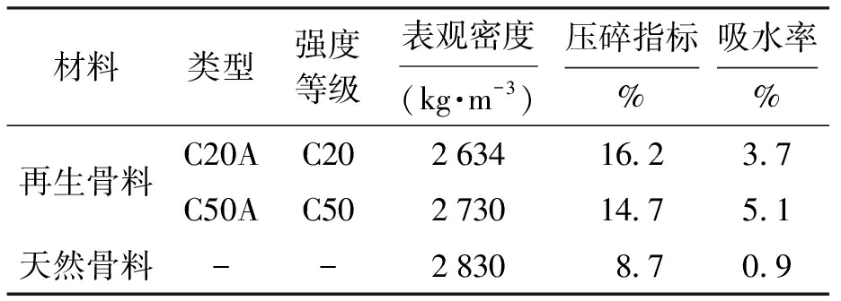 材料类型强度等级表观密度(kg·m-3)压碎指标%吸水率%再生骨料天然骨料C20AC20263416.23.7C50AC50273014.75.1--28308.70.9